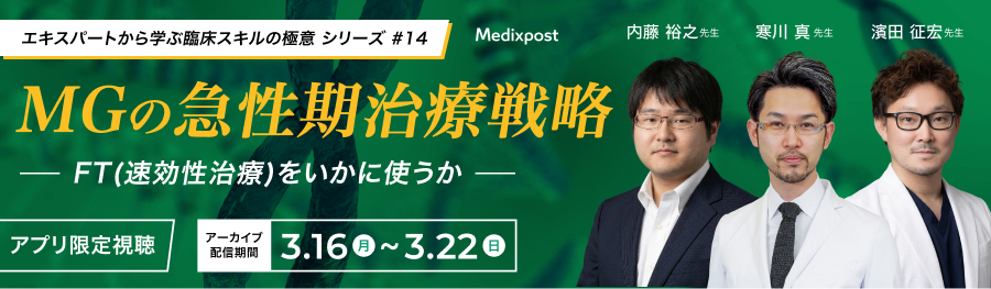 アプリ限定!アーカイブ配信のお知らせ(4つのDOAC使い分け・てんかん合併妊娠の薬剤選択・MG急性期治療)